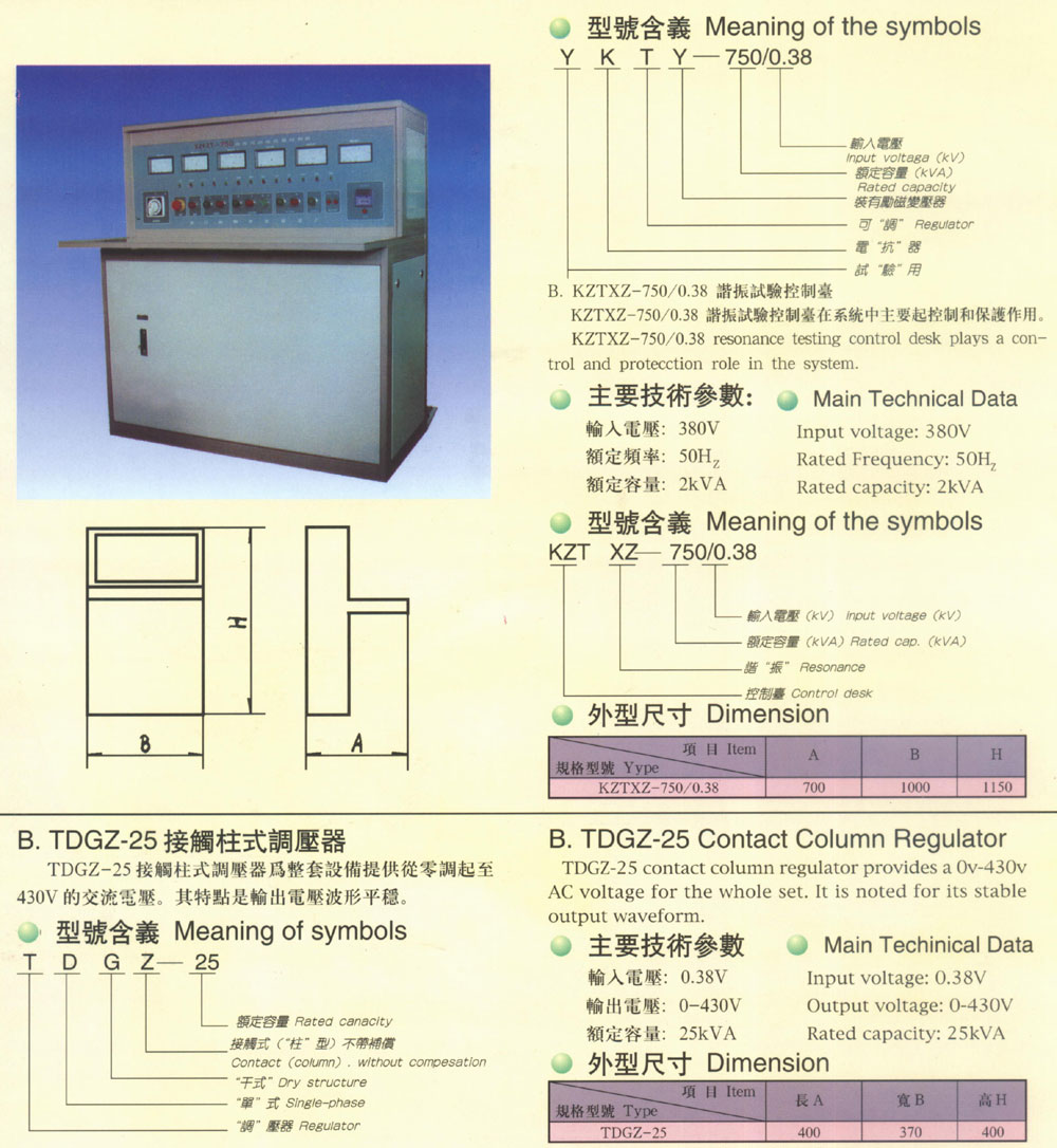 控制臺(tái)及轉(zhuǎn)芯調(diào)壓器參數(shù)